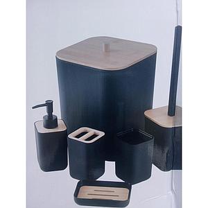 Kit, Set De Accesorios Plástico Baño Negro Y Madera Acra